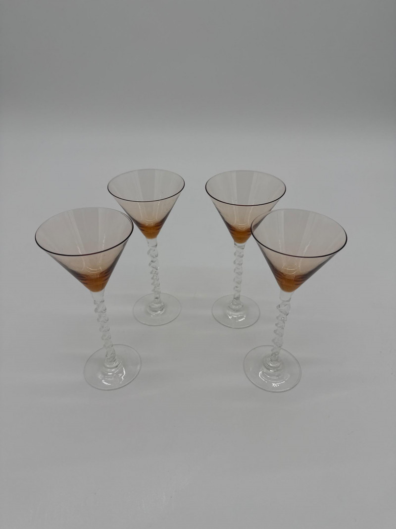 Lot # 13 - Set Of Four Vintage Martini Glasses With Twisted Clear Stem Design Starting Bid: $ 5.00 Bids: This sale will end in: |