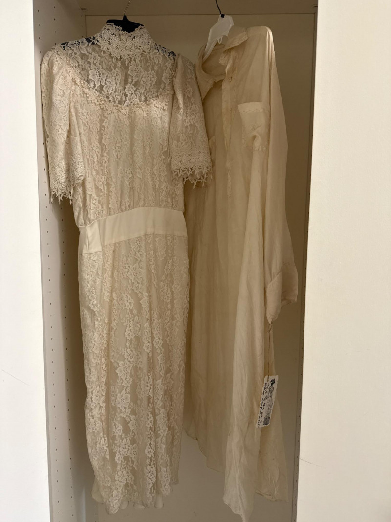Lot # 23 - Edwardian Lace Wedding Dress And Early 1900s Silk Men’s Nightgown Starting Bid: $ 5.00 Bids: This sale will end in: |