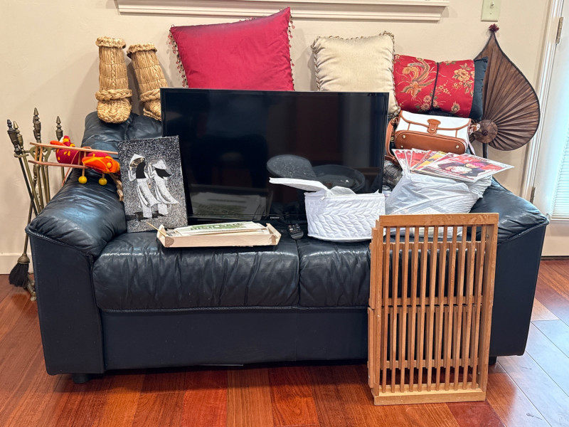 Lot # 34 - Samsung TV, Loveseat,Fitz Floyd Plates, Dooney Bag, Comics And Labels Starting Bid: $ 5.00 Bids: This sale will end in: |