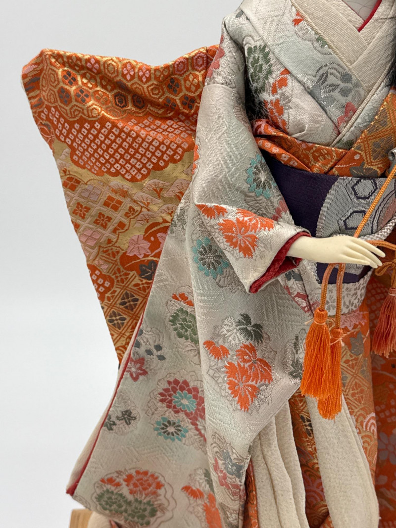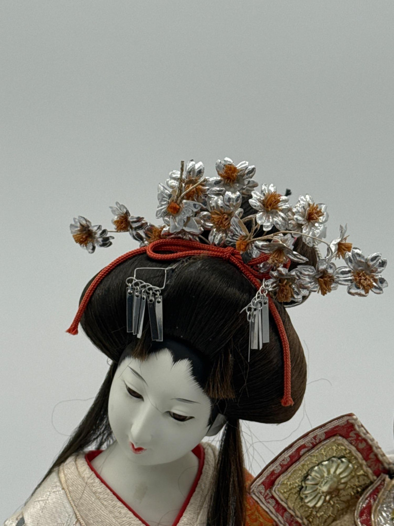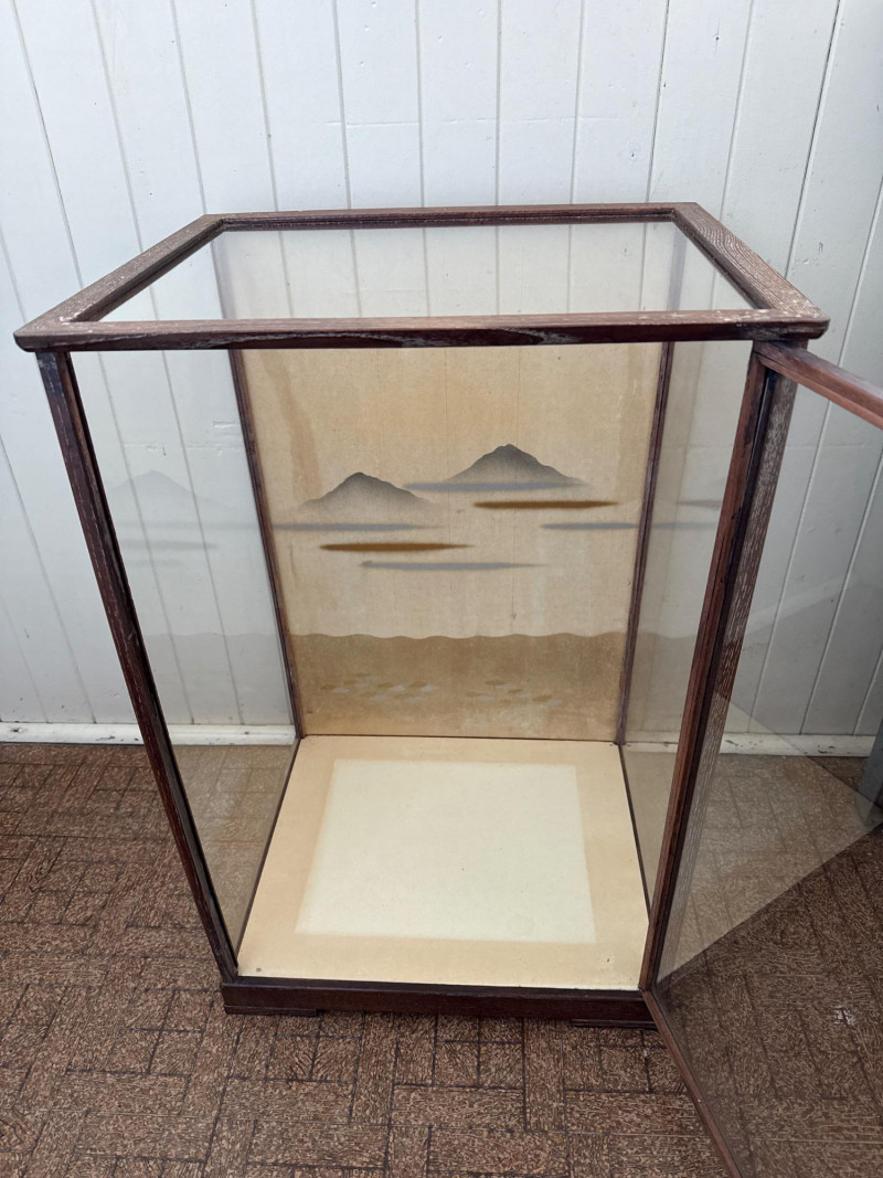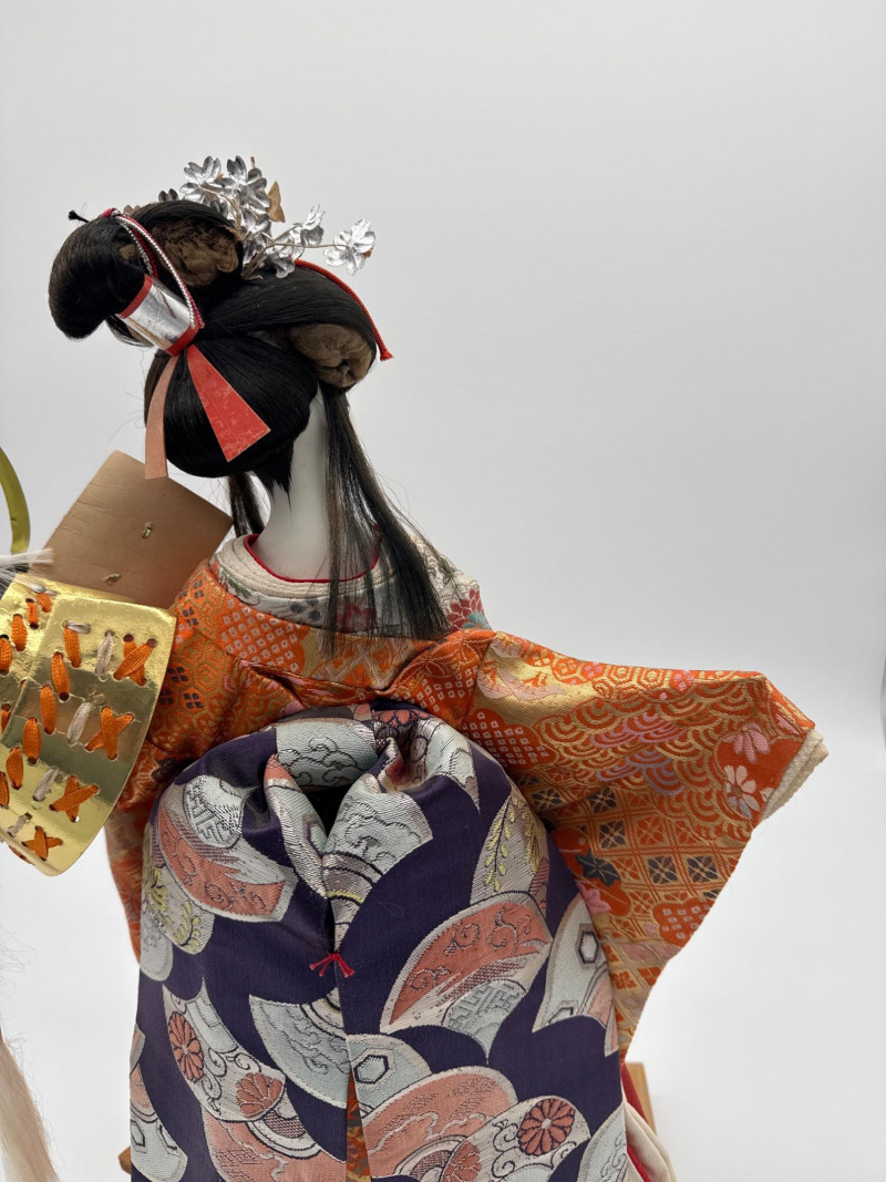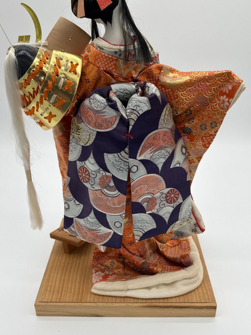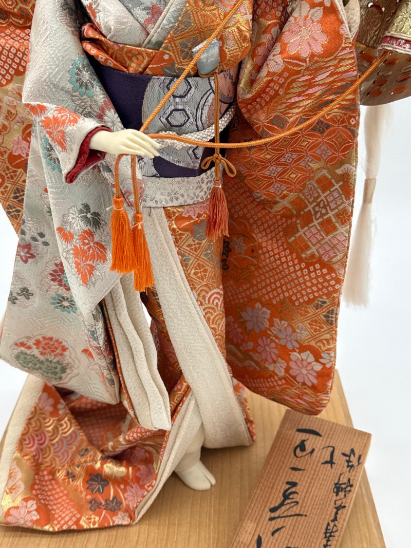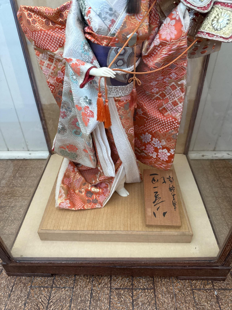 specific doll features gold brocade robes and a decorative headdress. Discover a delightful collectible that radiates vintage appeal! This charming doll stands nearly 20 inches tall and exudes timeless elegance with its classic style and intricate detailing. Whether you’re a seasoned collector or just beginning your journey into vintage dolls, this piece makes a wonderful centerpiece for any collection. Case 17"W x 26"H x 14"D Doll: 12"W x 21 1/2"H