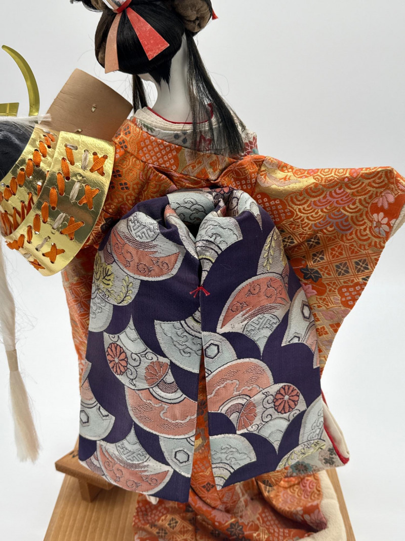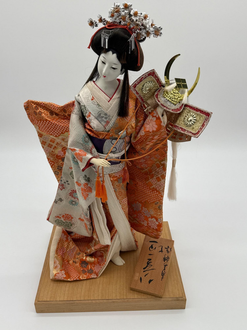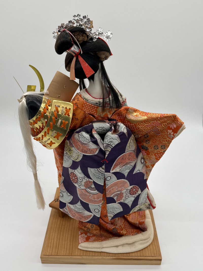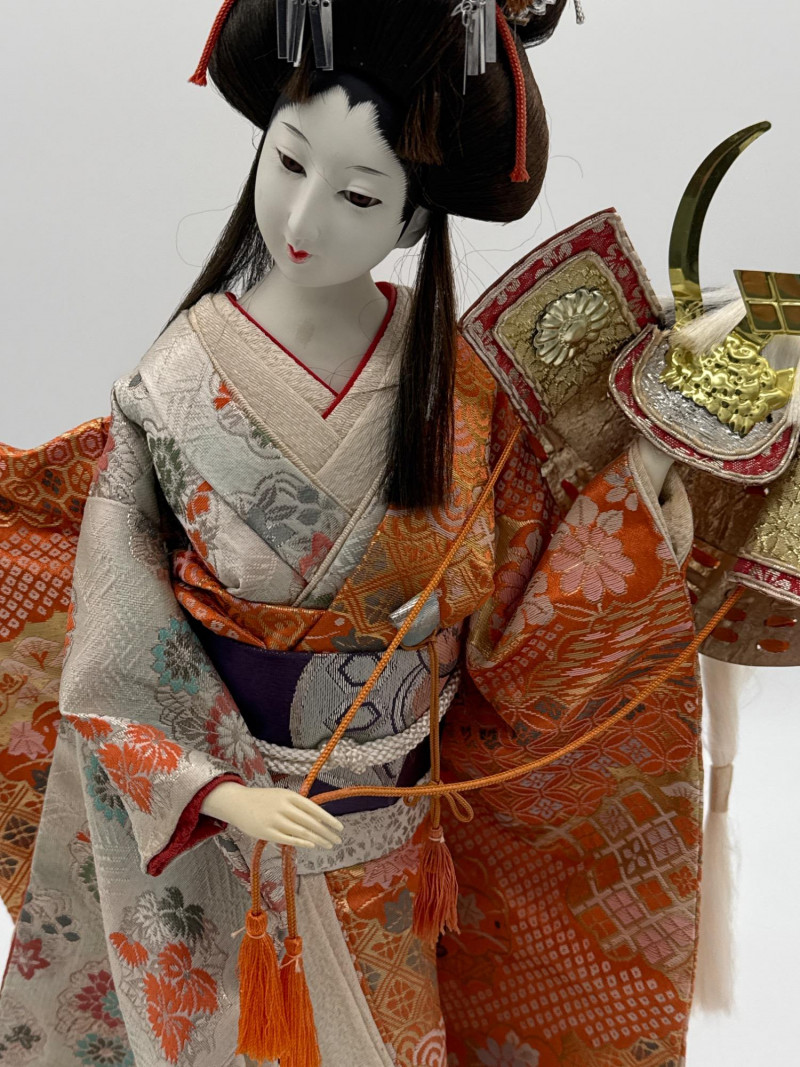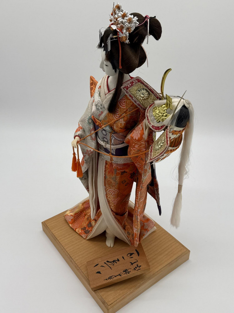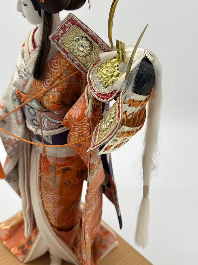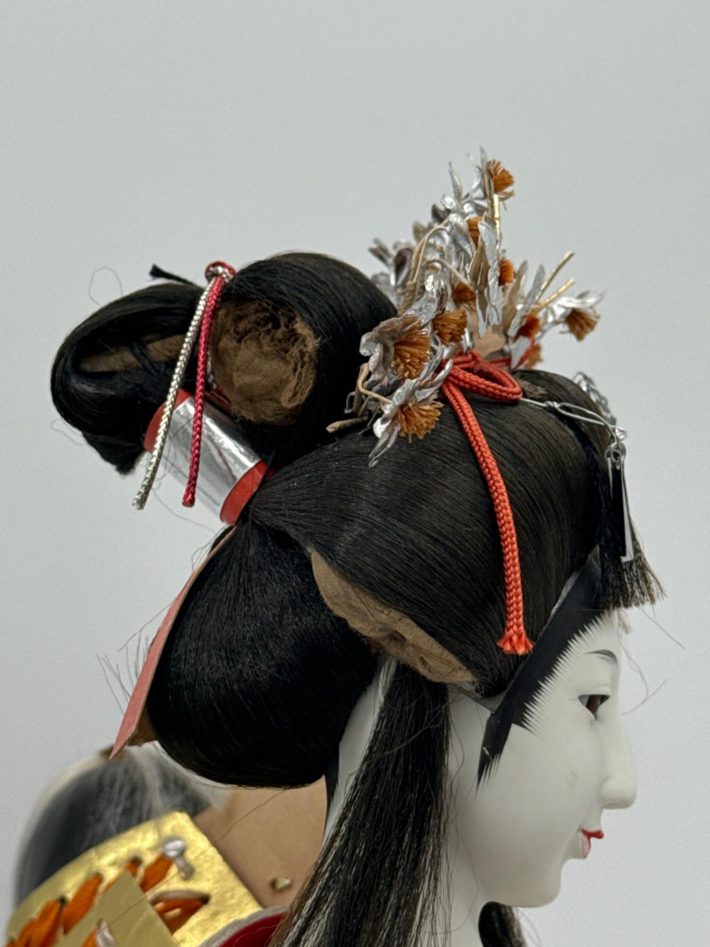 specific doll features gold brocade robes and a decorative headdress. Discover a delightful collectible that radiates vintage appeal! This charming doll stands nearly 20 inches tall and exudes timeless elegance with its classic style and intricate detailing. Whether you’re a seasoned collector or just beginning your journey into vintage dolls, this piece makes a wonderful centerpiece for any collection. Case 17"W x 26"H x 14"D Doll: 12"W x 21 1/2"H