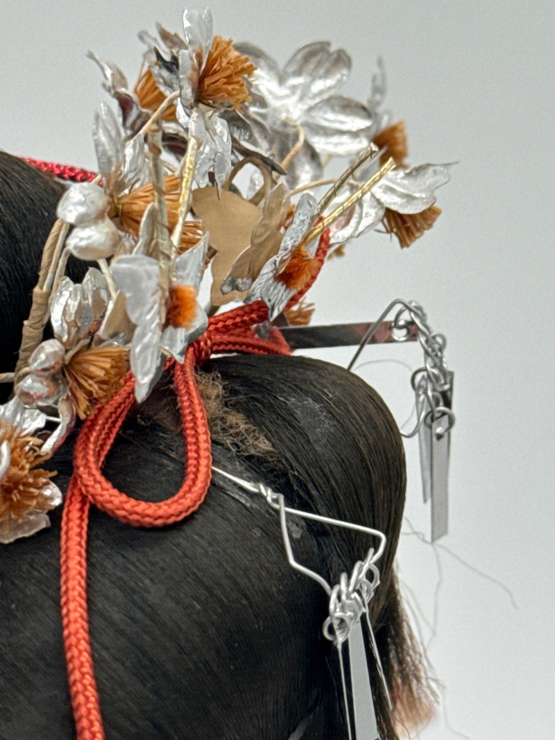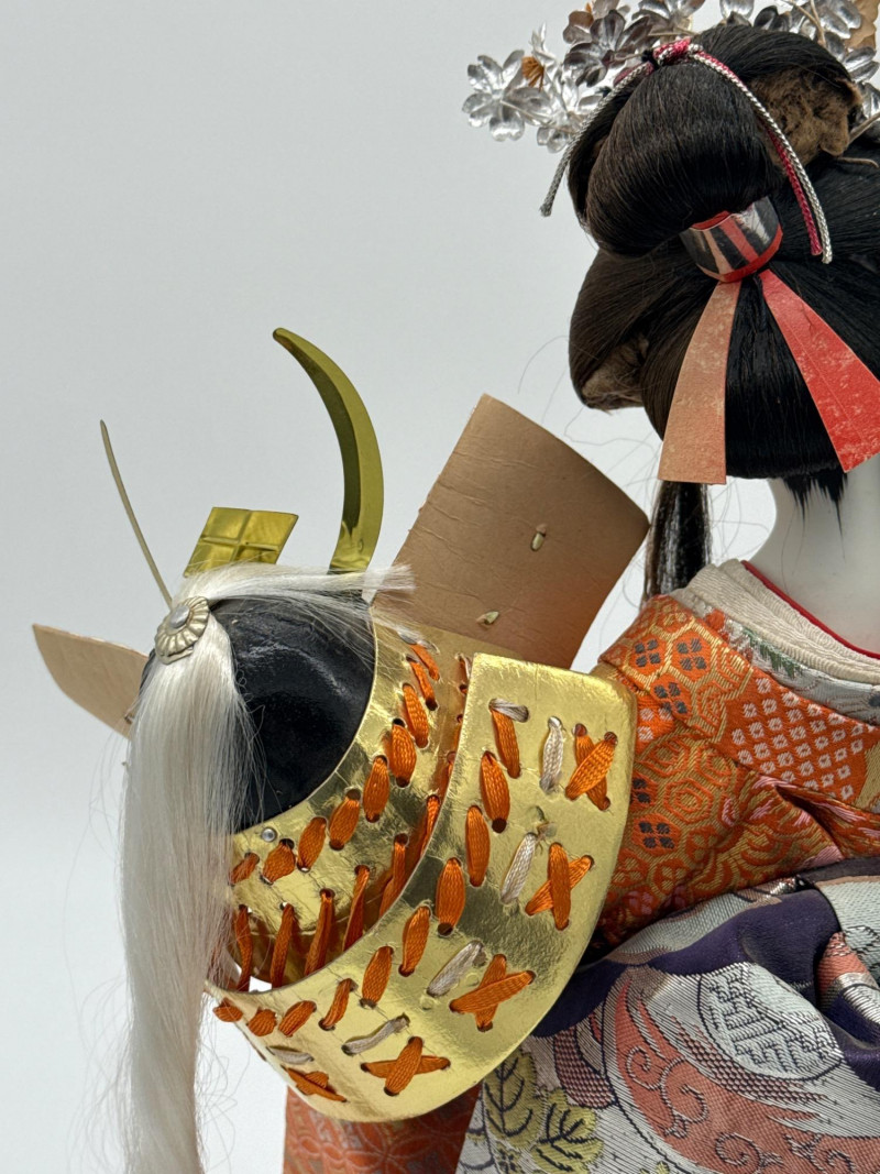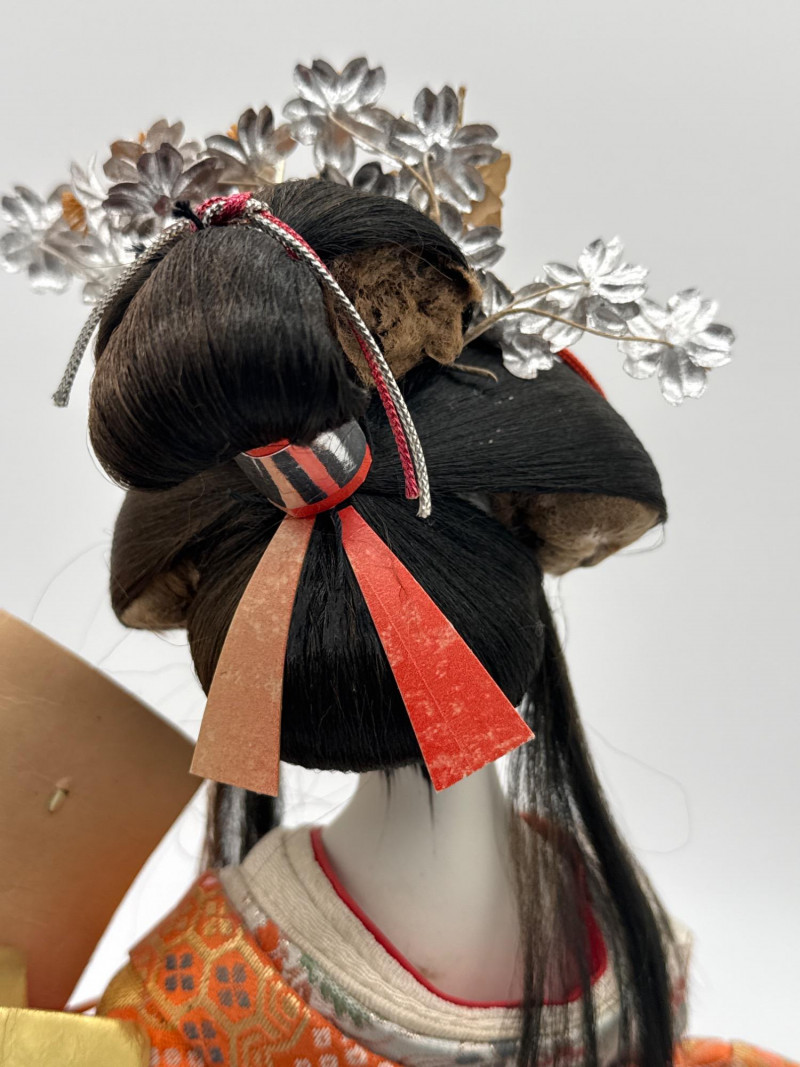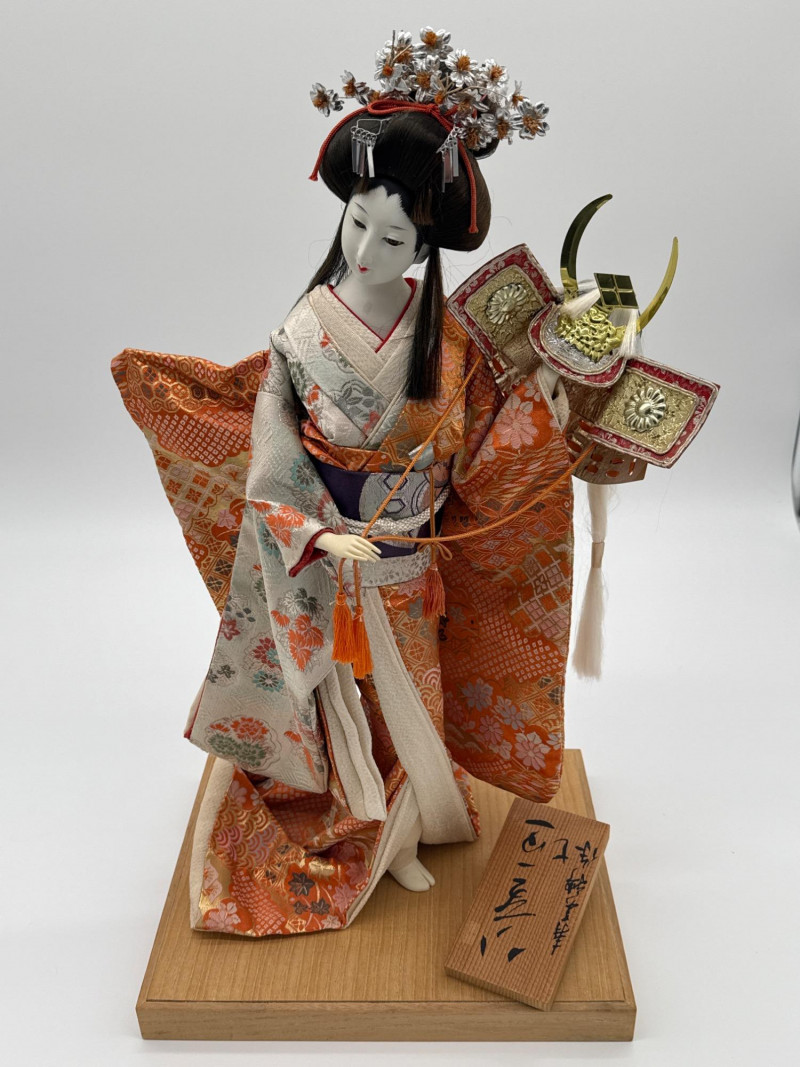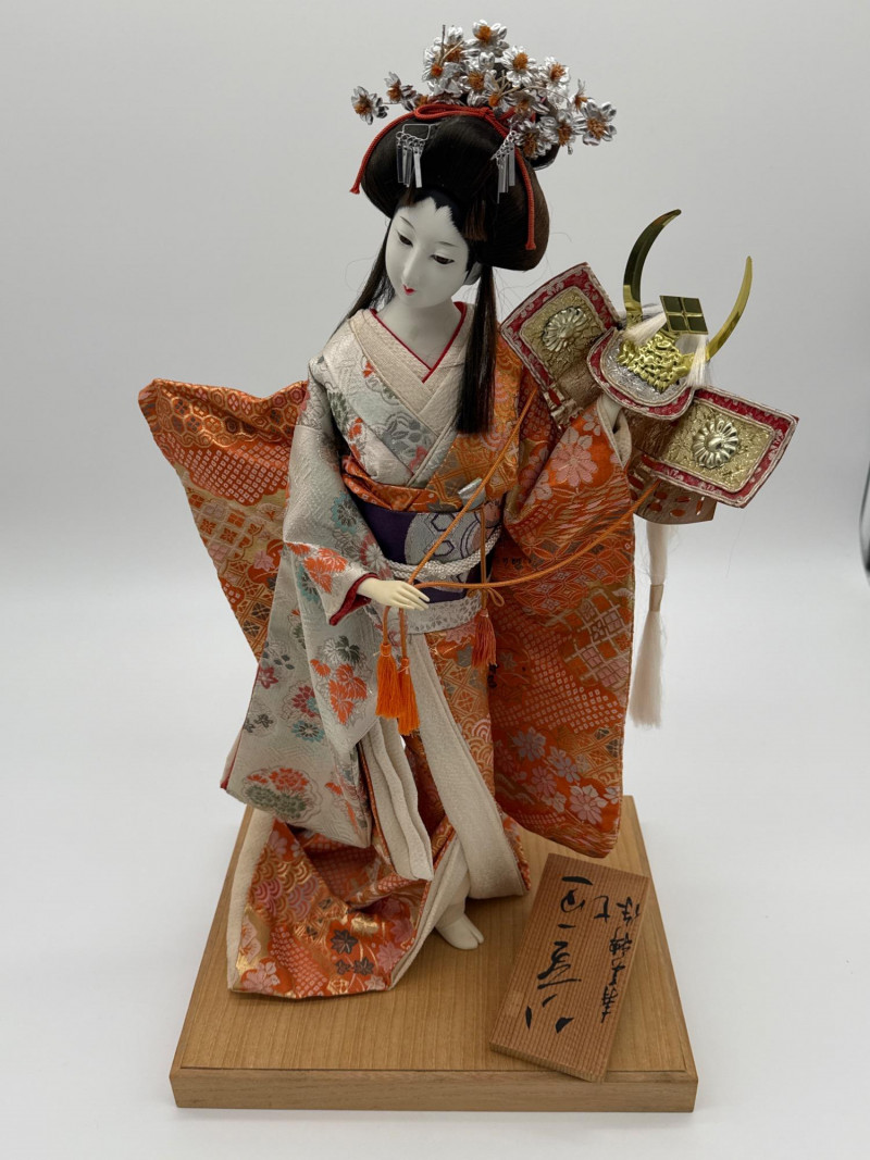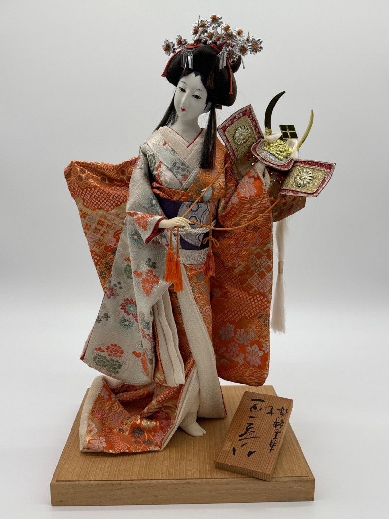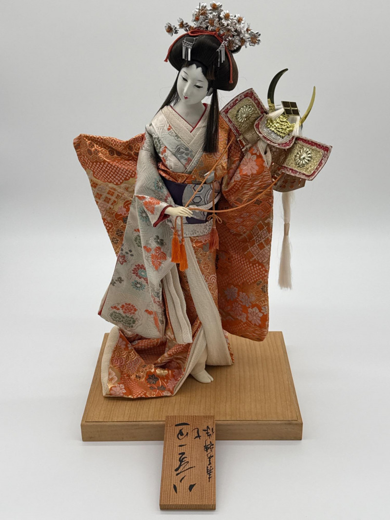 specific doll features gold brocade robes and a decorative headdress. Discover a delightful collectible that radiates vintage appeal! This charming doll stands nearly 20 inches tall and exudes timeless elegance with its classic style and intricate detailing. Whether you’re a seasoned collector or just beginning your journey into vintage dolls, this piece makes a wonderful centerpiece for any collection. Case 17"W x 26"H x 14"D Doll: 12"W x 21 1/2"H