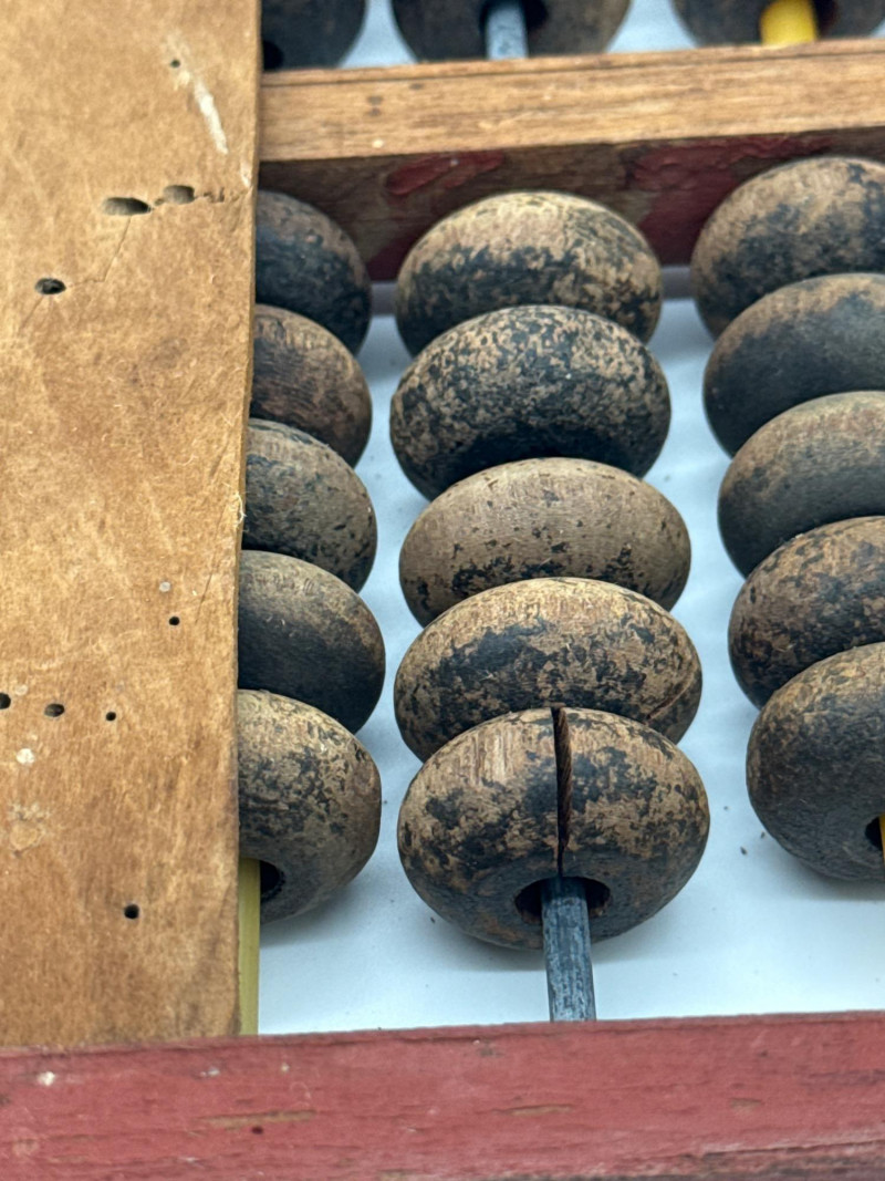 specific abacus appears to be a vintage or antique piece made of wood, possibly