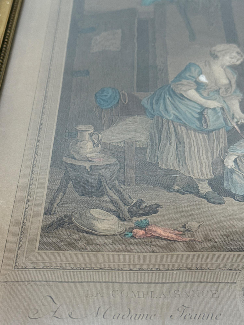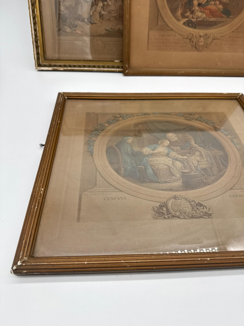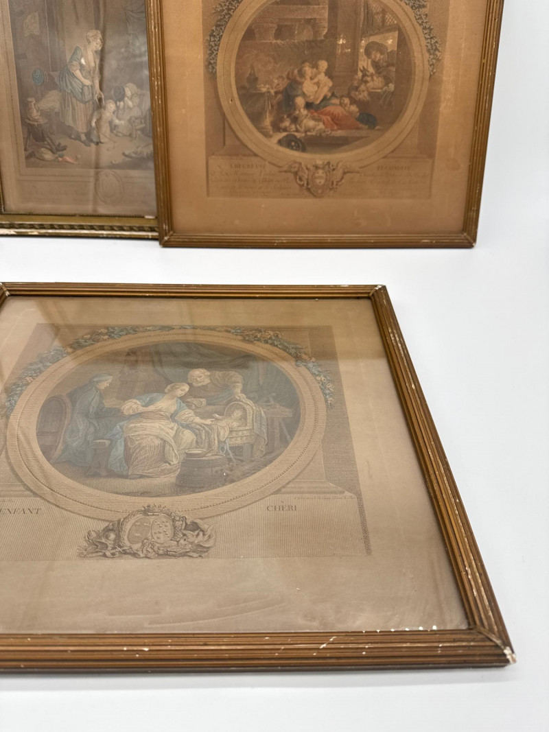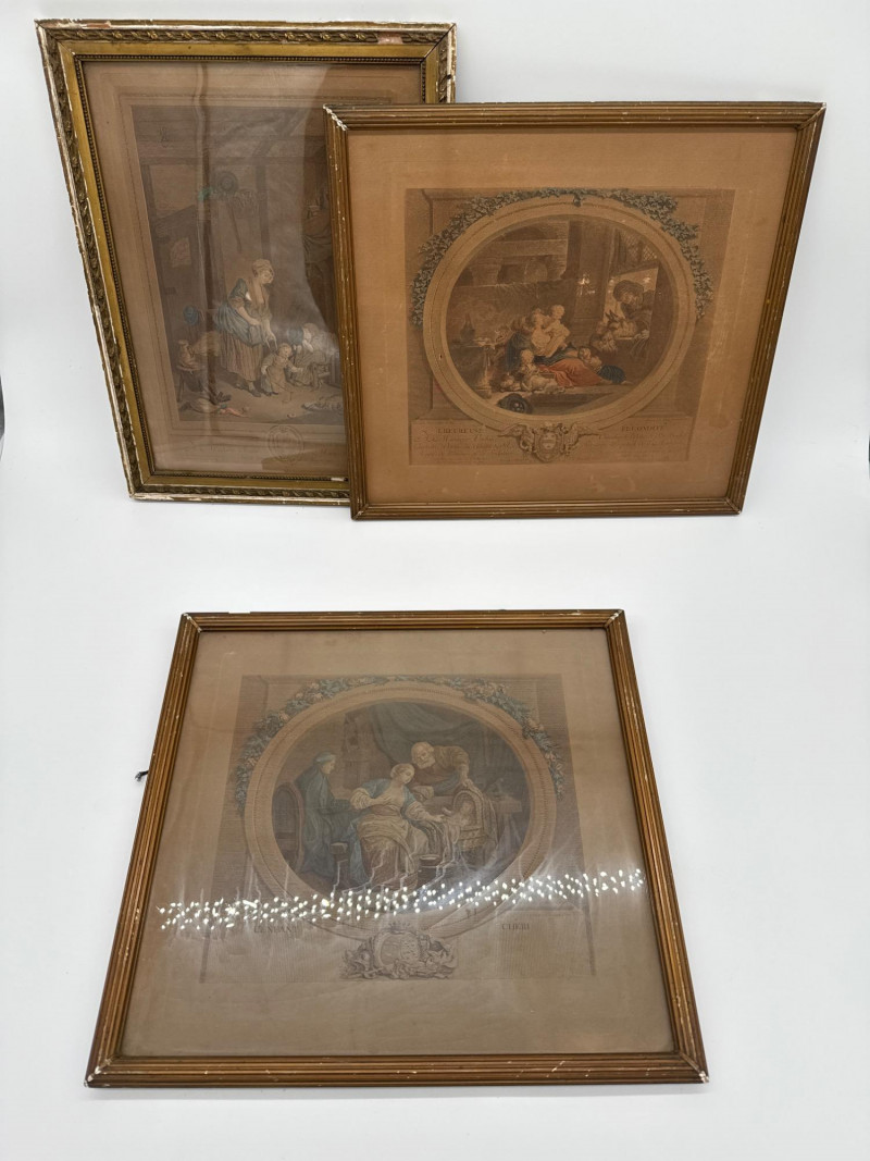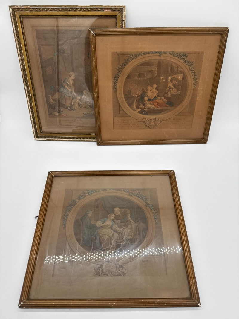 Lot # 17 - Set Of Three Antique Frame Prints Depicting Classical Domestic Scenes