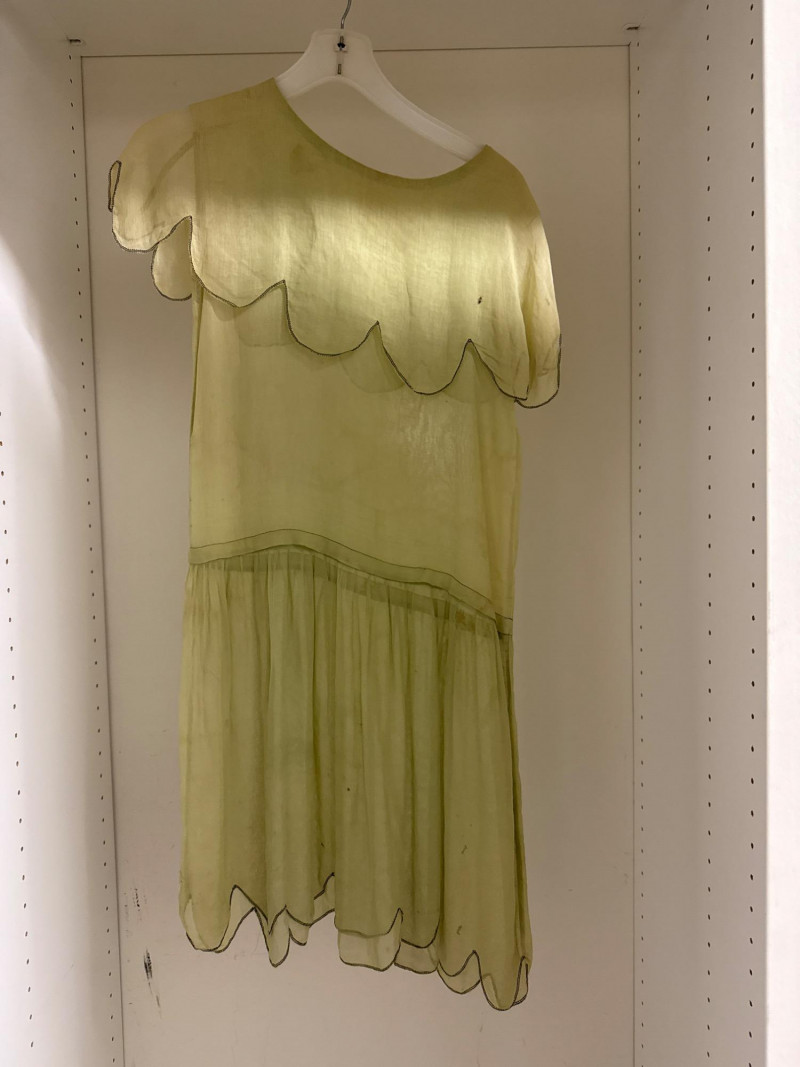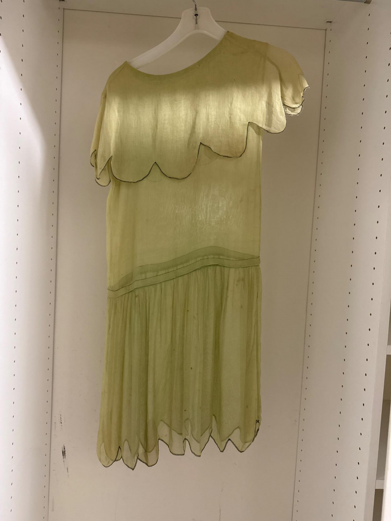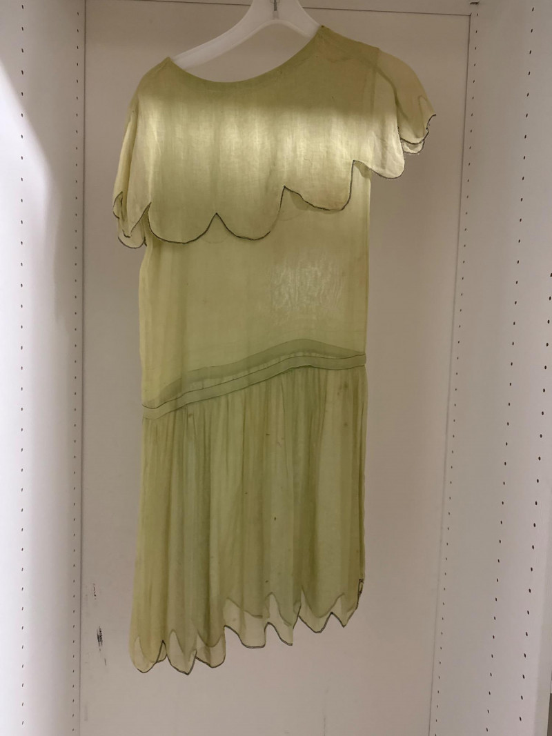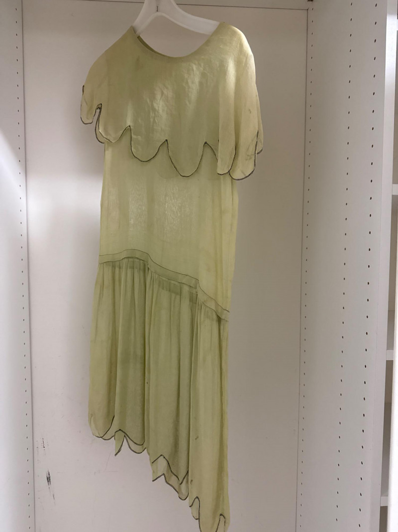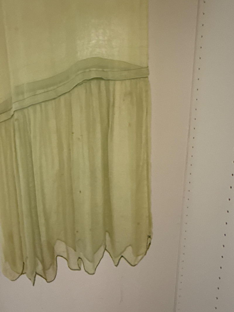 period-specific tailoring. Materials made of: Silk, Cotton, Synthetic Fabric Category: Clothing & Accessories > Vintage Dresses > Mixed Lot Measurements: Light Green Sheer Dress: Length 32" x Width 14" All clothes is this entire auction needs to be cleaned