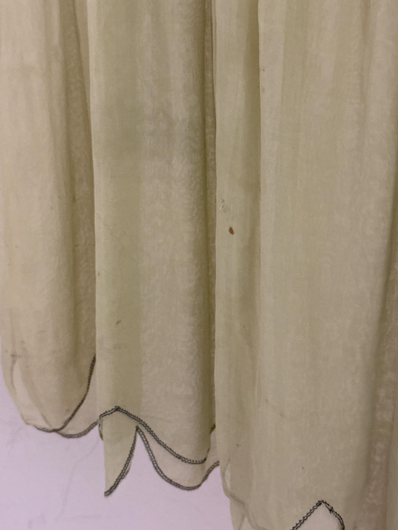 garment featuring scalloped edges along the neckline and hem, reflecting early