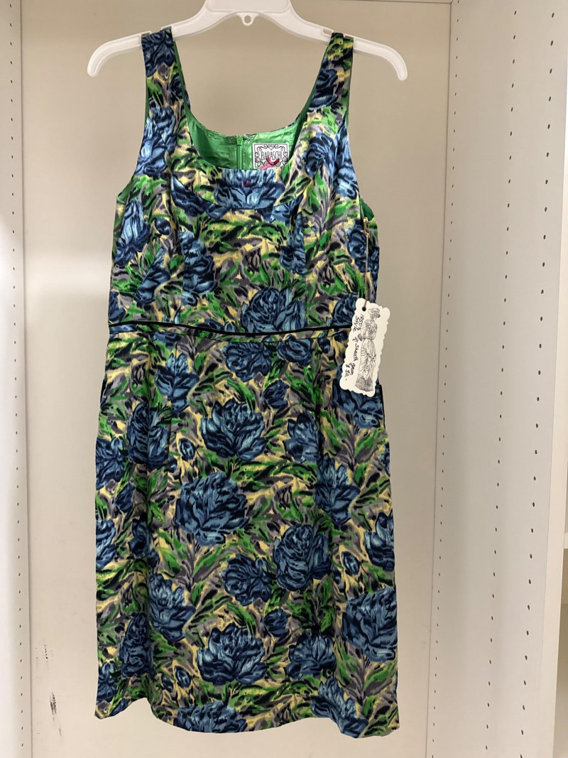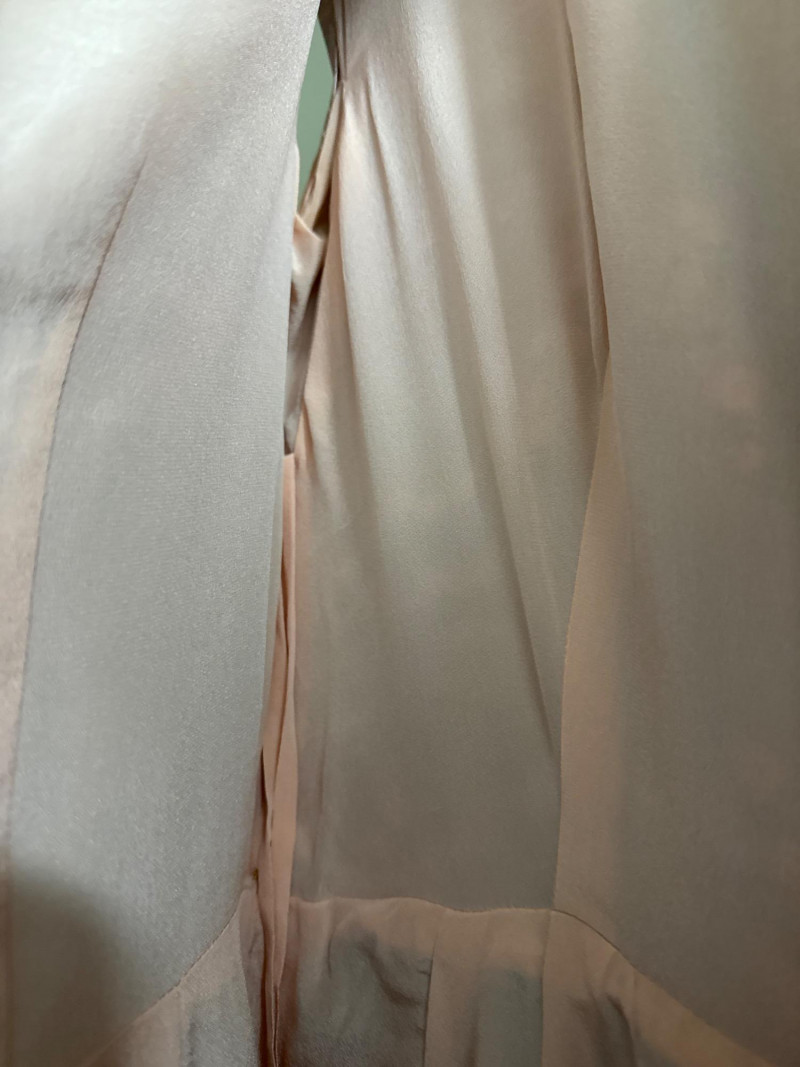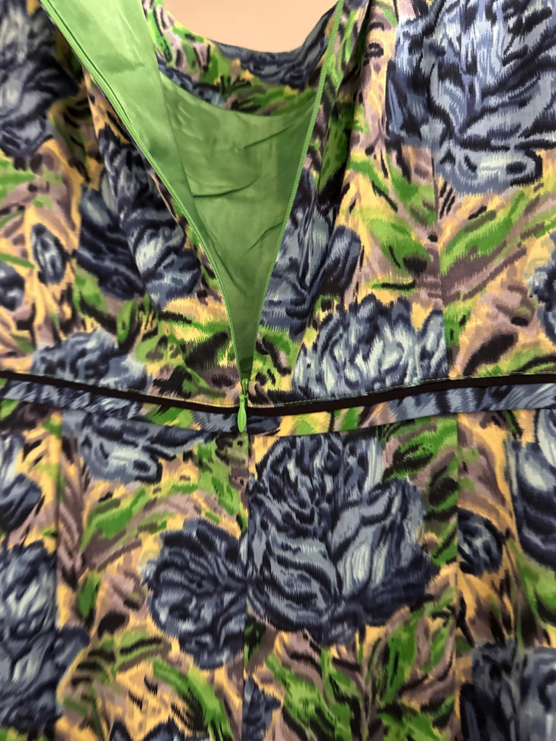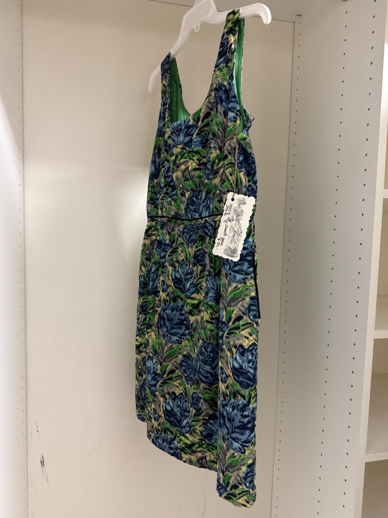 indicating mid-20th-century origin and quality craftsmanship. This dress