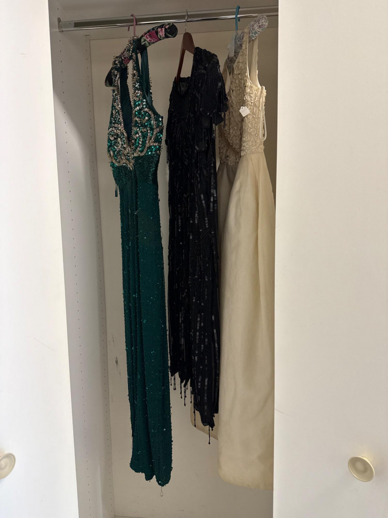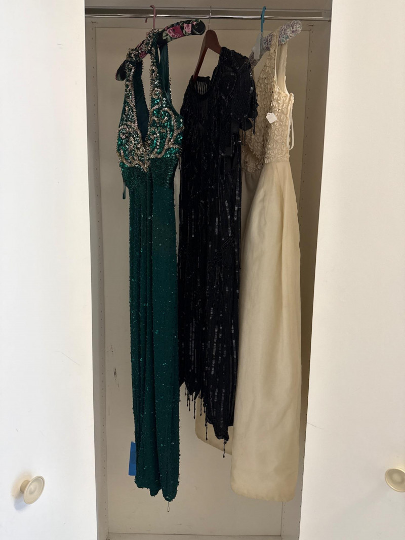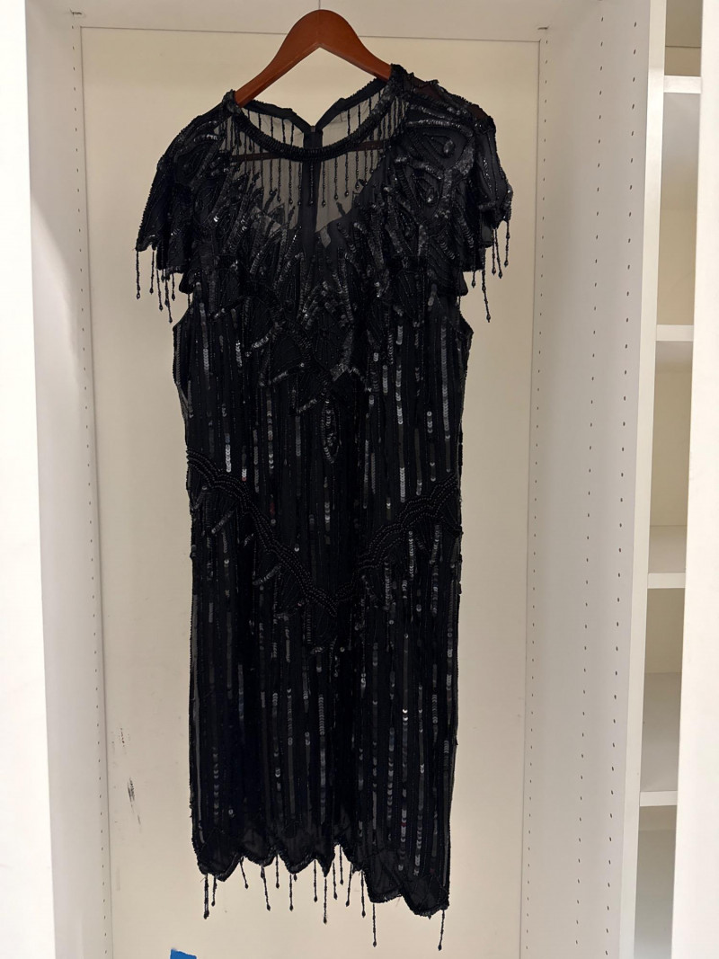 cleaning only. The second dress is a black beaded cocktail dress by Lawrence