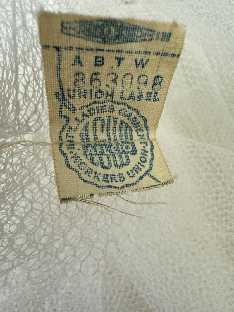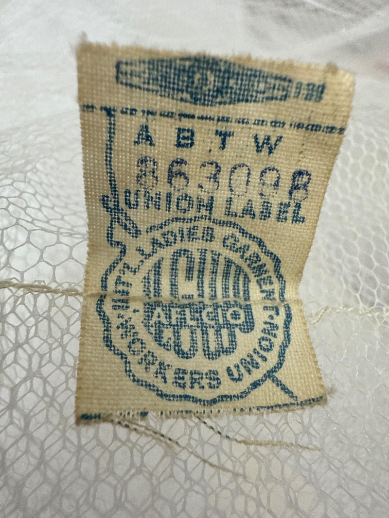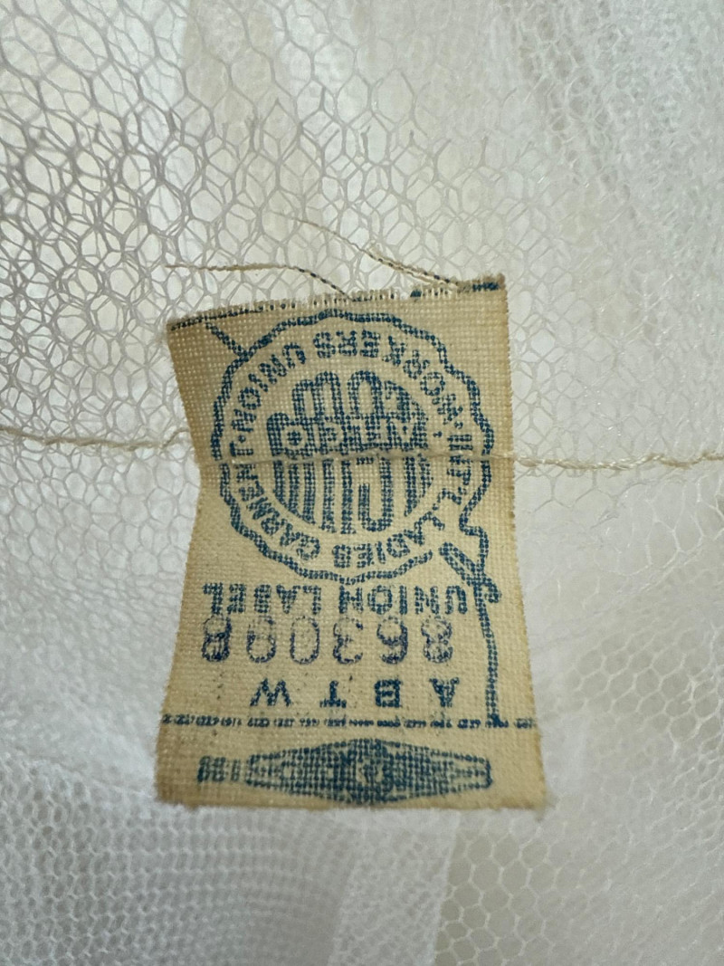 delicate lace and tulle layers. A visible ILGWU union label confirms its