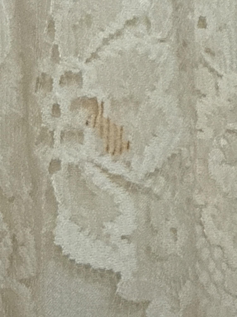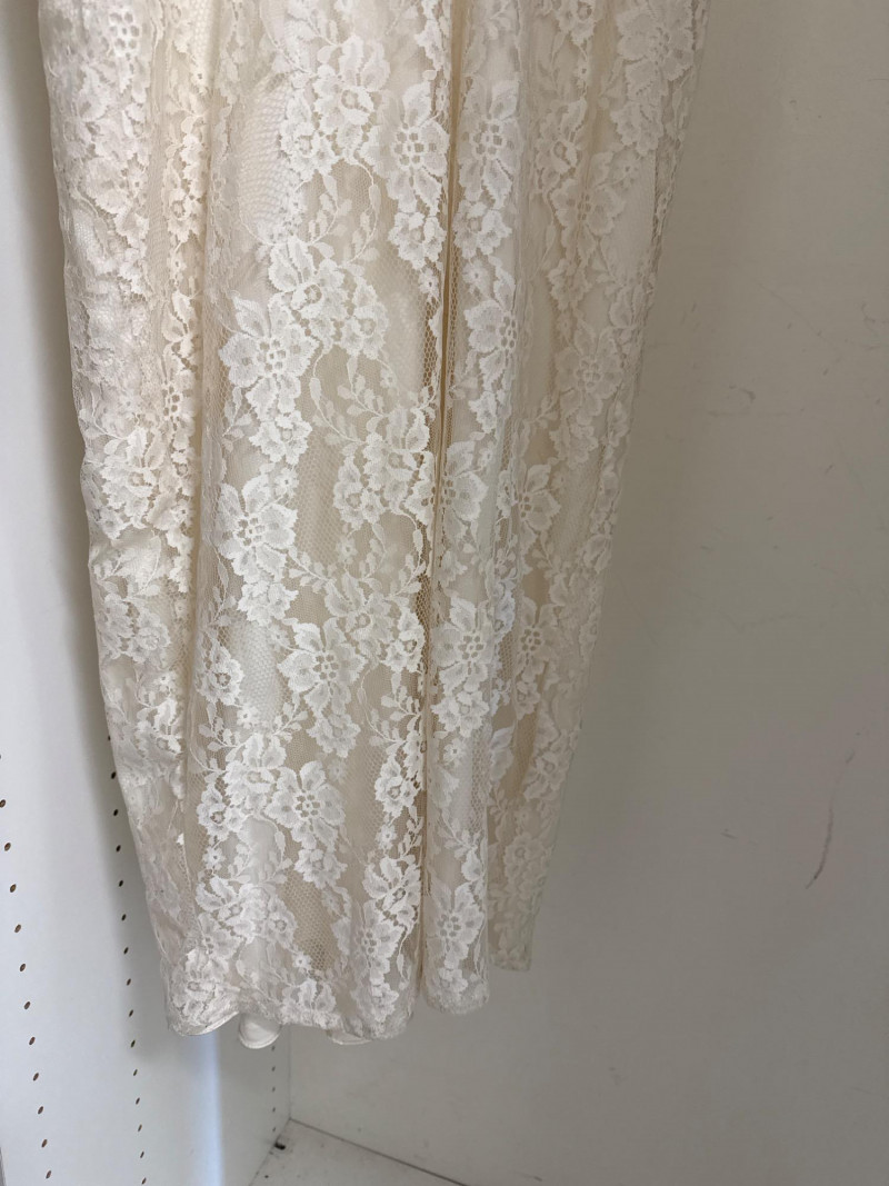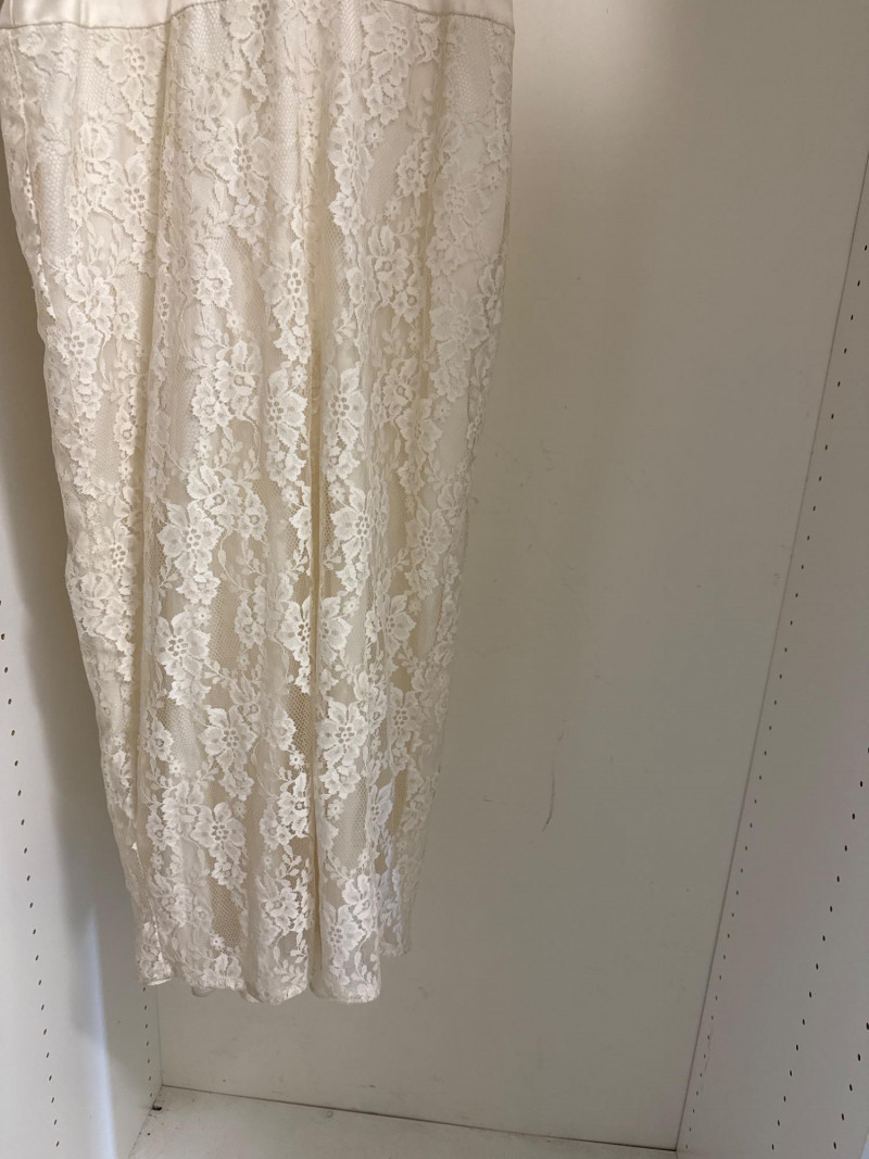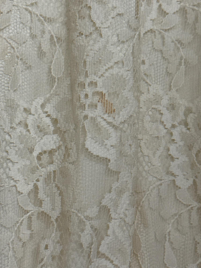 antique clothing. Materials made of: Lace, Satin, Silk Category: Collectibles > Antique Clothing > Wedding & Formal Wear Measurements: Wedding Dress: Length 50" x Width 13 1/4" x Sleeves' Length 14" All clothes is this entire auction needs to be cleaned