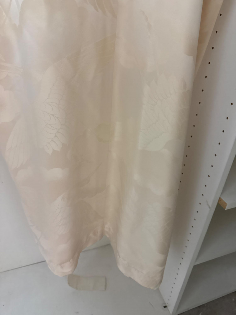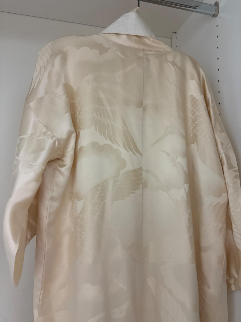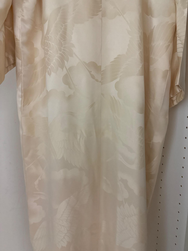 silk robe with a subtle woven crane pattern, intended as an underlayer for