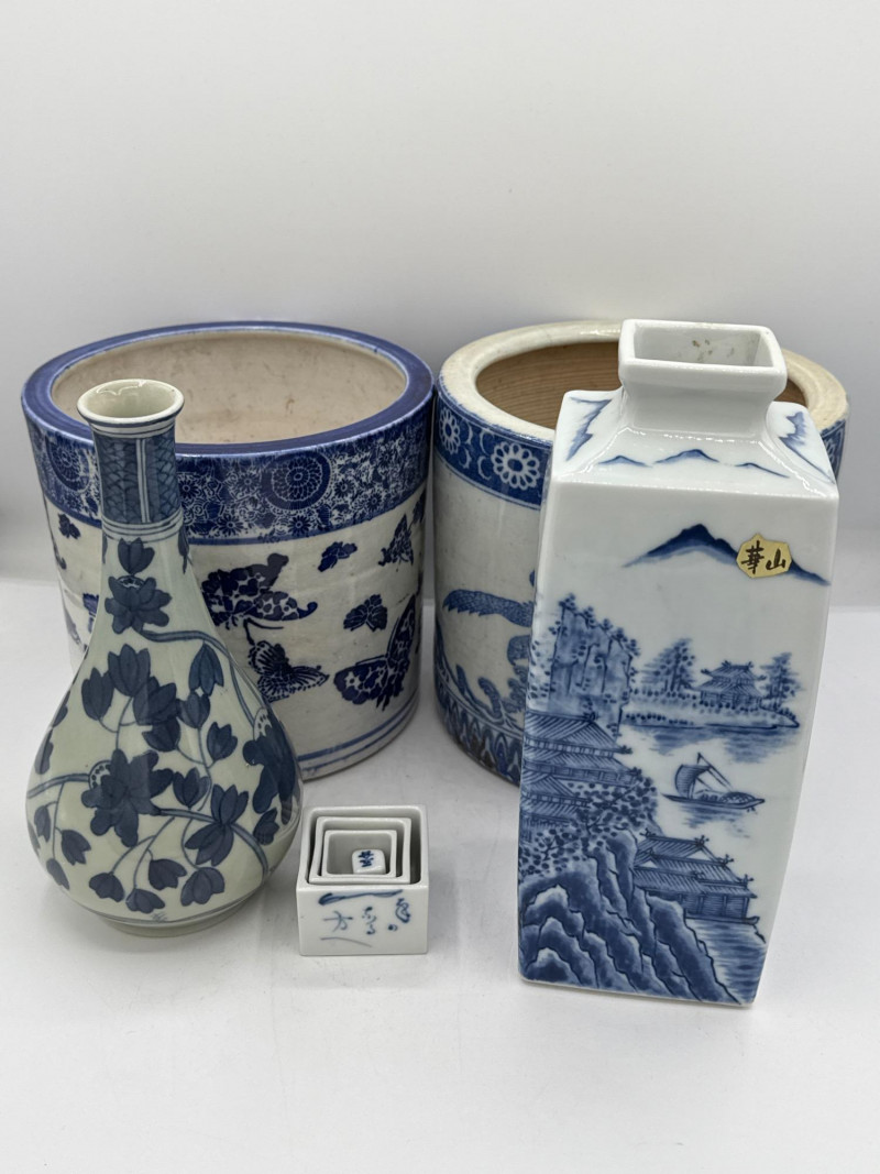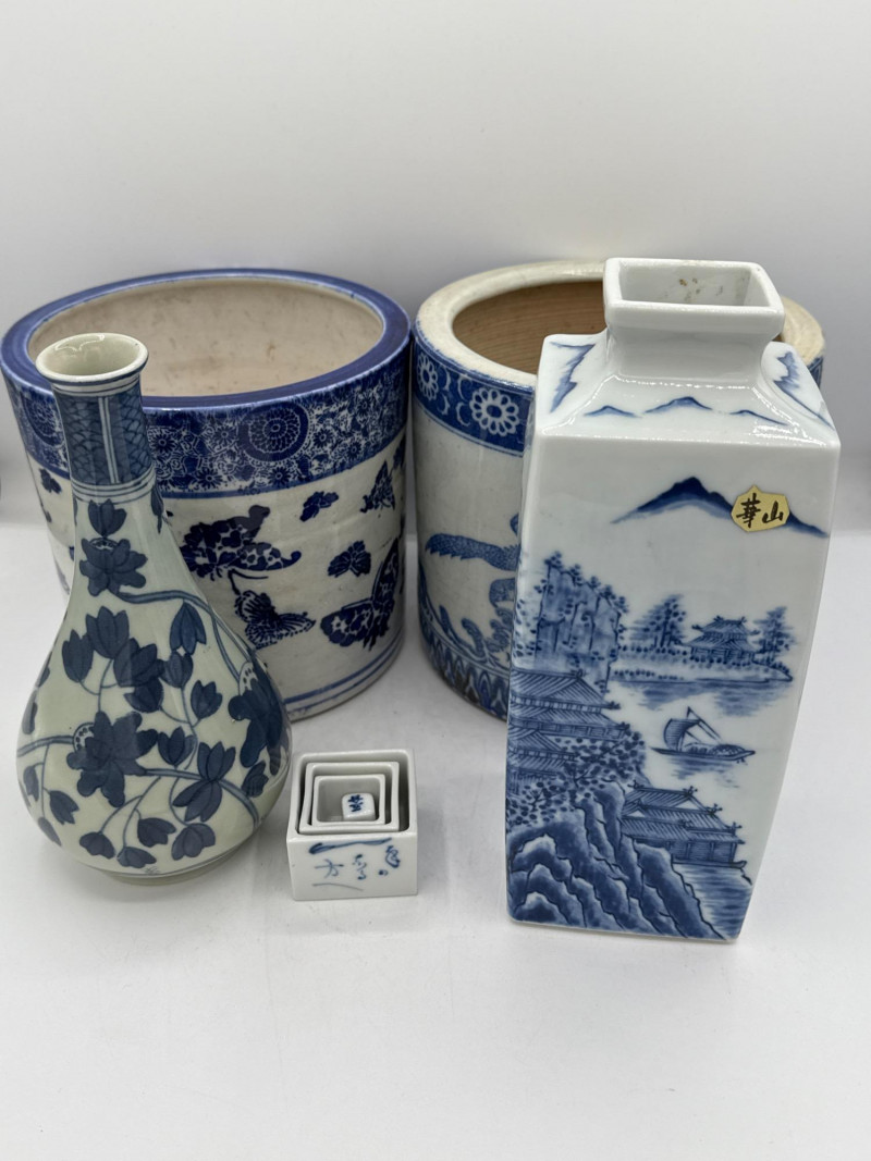 Collection Of Chinese Blue And White Porcelain Vessels And Boxes This lot comprises approximately five Chinese blue and white porcelain