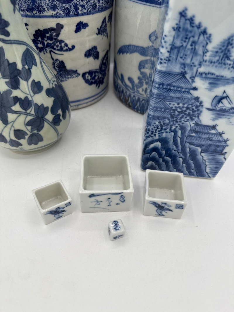 Lot # 29 - Collection Of Chinese Blue And White Porcelain Vessels And Boxes