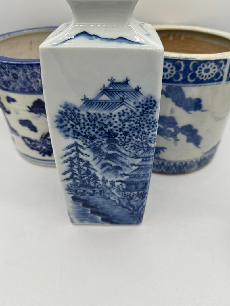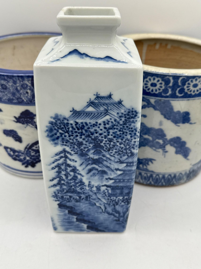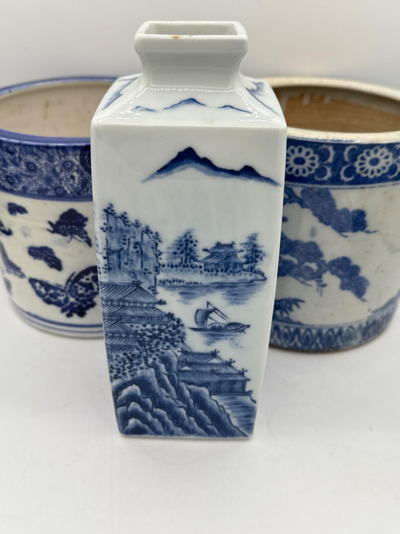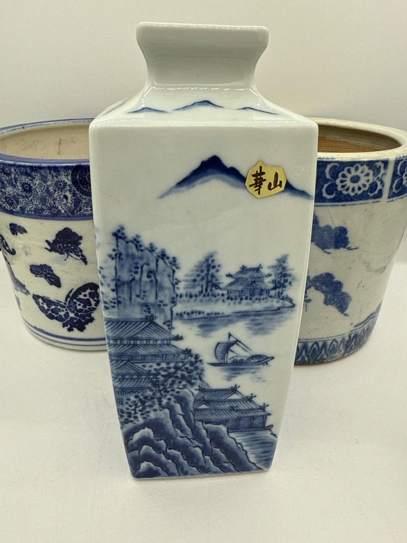 ceramic aesthetics adapted for decorative and functional purposes. Materials Made Of: Item Category: Chinese Decorative Arts / Porcelain Collection Measurements: Square Containers Set: Biggest and then on down, 2" Square Tall Square Bottle: Height 9 1/2" x Width 3 3/4" First Cylindrical Planter: Height 7" x Width 7" Second Cylindrical Planter: Height 6 1/2" x Width 71/4" Pear-Shaped Vase: Height 8 1/2" x Width 4" Note/s: Please kindly look at the pictures to ascertain your reference.