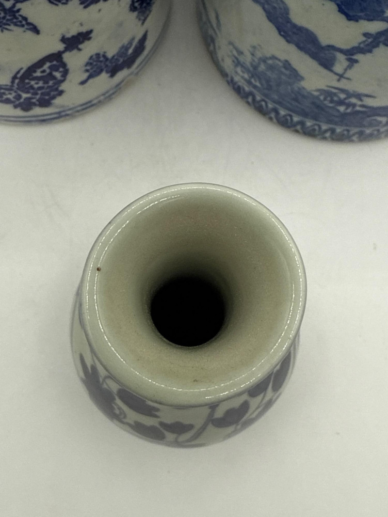 These pieces reflect the enduring popularity of blue and white porcelain, a