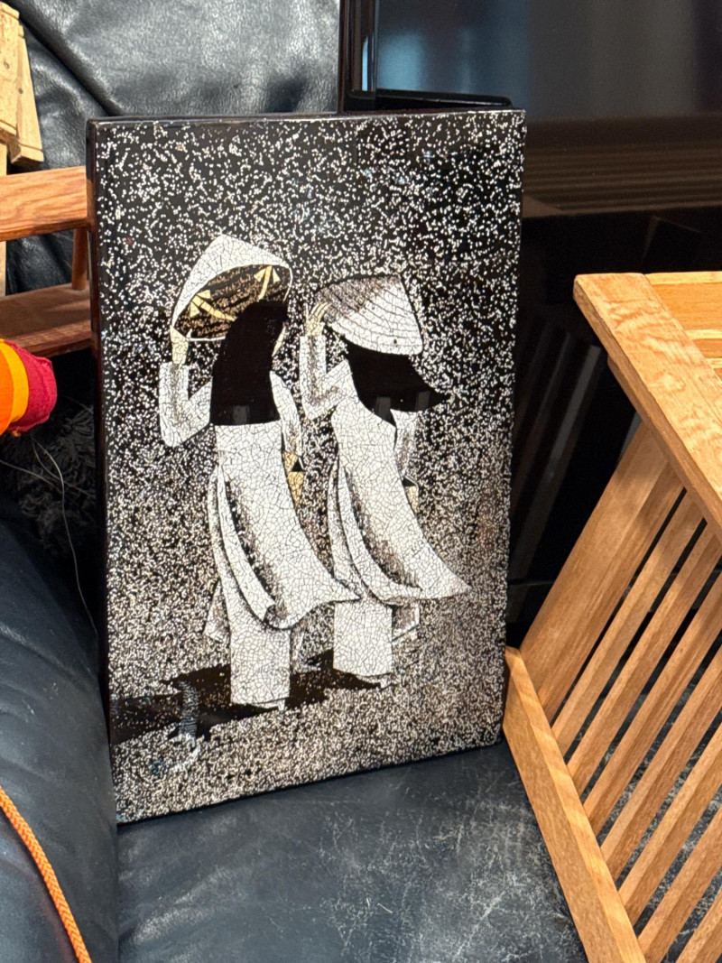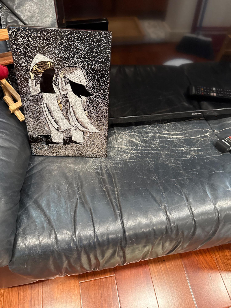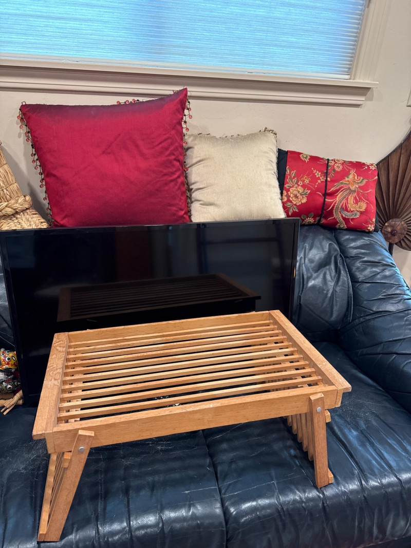 spanning late 20th century and earlier traditions. Materials Made Of: Measurements: Loveseat: Length 57" x Depth 23" x Height 29 1/2" ( Love seat has cracks - See Photos ) Samsung Flat-Sceen: Length 29" x 17" Chrysanthemum Plate: sizes 7 3/4" and 6 1/4" Item Category: