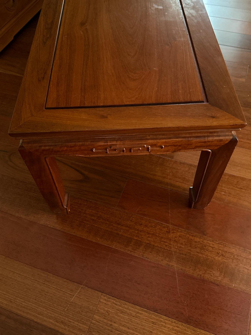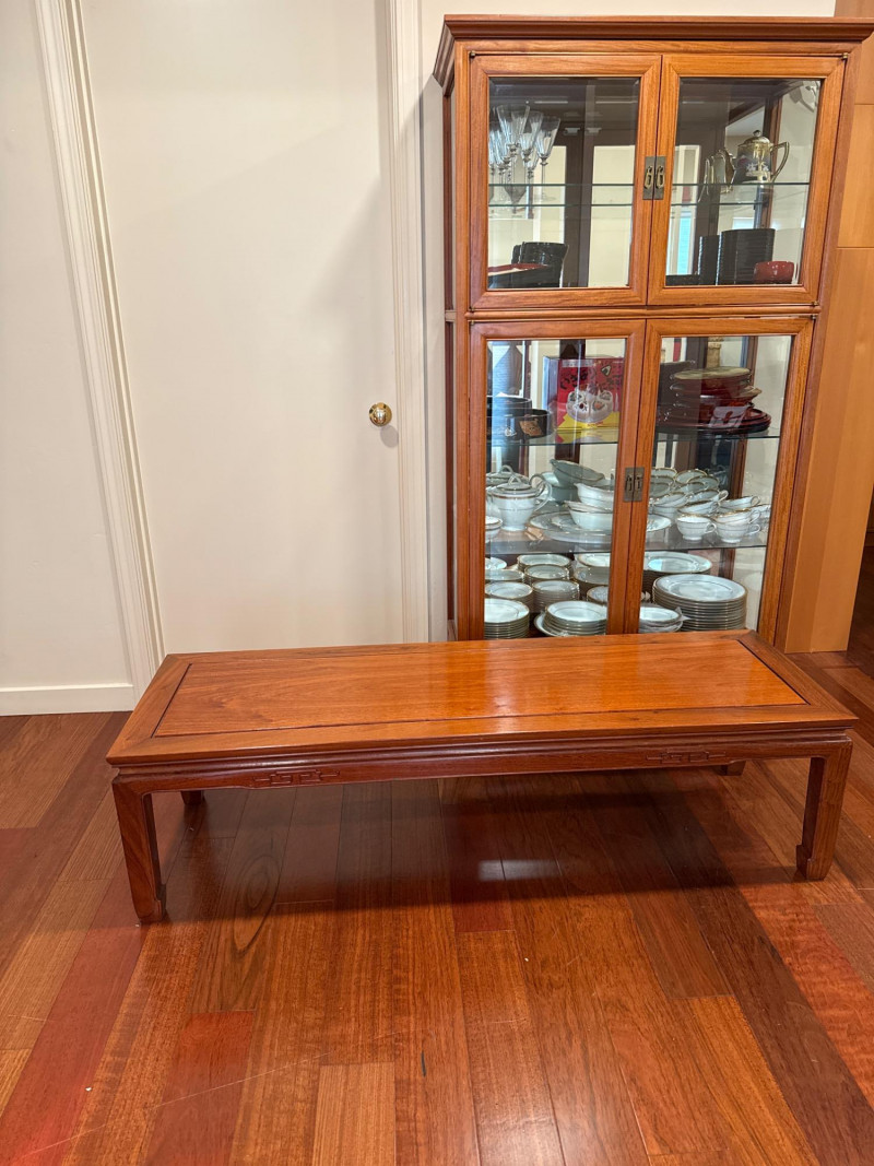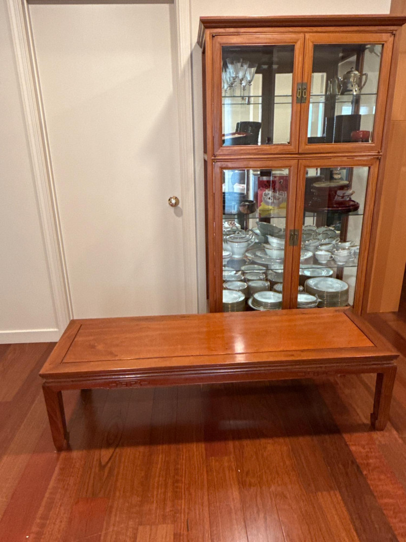 wooden coffee table. The set originated from Hong Kong, as noted. The cabinet